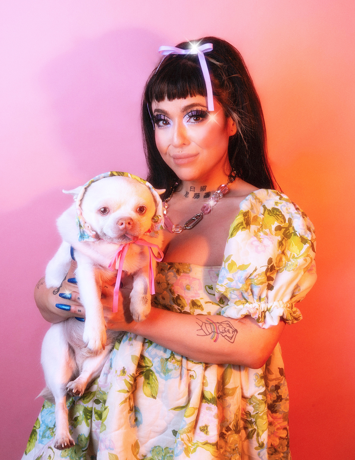 Théo Bignon’s meticulous embroideries use materials associated with flamboyant queer self-expression — shiny pink beads, glittering sequins, false eyelashes — to demonstrate the place-making praxis of queer cruising. Molly JF Caldwell’s tongue-in-cheek pink textiles emphasize the gendered politics of weaving and the finger-pointing spectacle of female celebrities. Meanwhile, Lux Gow-Habrich’s fantastical porcelain hair and makeup tools highlight a relationship between queer femme dressing rituals and diasporic (un)belonging. And Hea R. Kim invites us to imagine a possible ecological future of plastic-encrusted creatures in crystallized ecosystems. The artists’ skillful handling of their materials seduces attendees into an exquisite sensorium that gives way to refusal and radical self-creation.