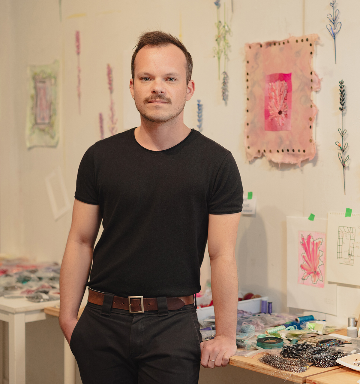 Join Montreal-based artist Théo Bignon in an embroidery and embellishment workshop, oriented around the possibilities of queer place-making. Come learn about his beading technique and create your own embellished embroidery. Bignon’s practice of embroidering and beading meaningful locations in queer life to mark the relationship between place and the crafting of queer identity. Participants are encouraged to bring an image of or an object from a place that is important to them and their identity — this could be from spaces of friendship, found family, sexual liberation, emotional release, transition, and many more. Following a short discussion of his work, Bignon will lead participants through the process of sketching, embroidering, and beading a vignette onto a small circle of cloth as a way of reflecting on our everyday, unconscious place-making practices.