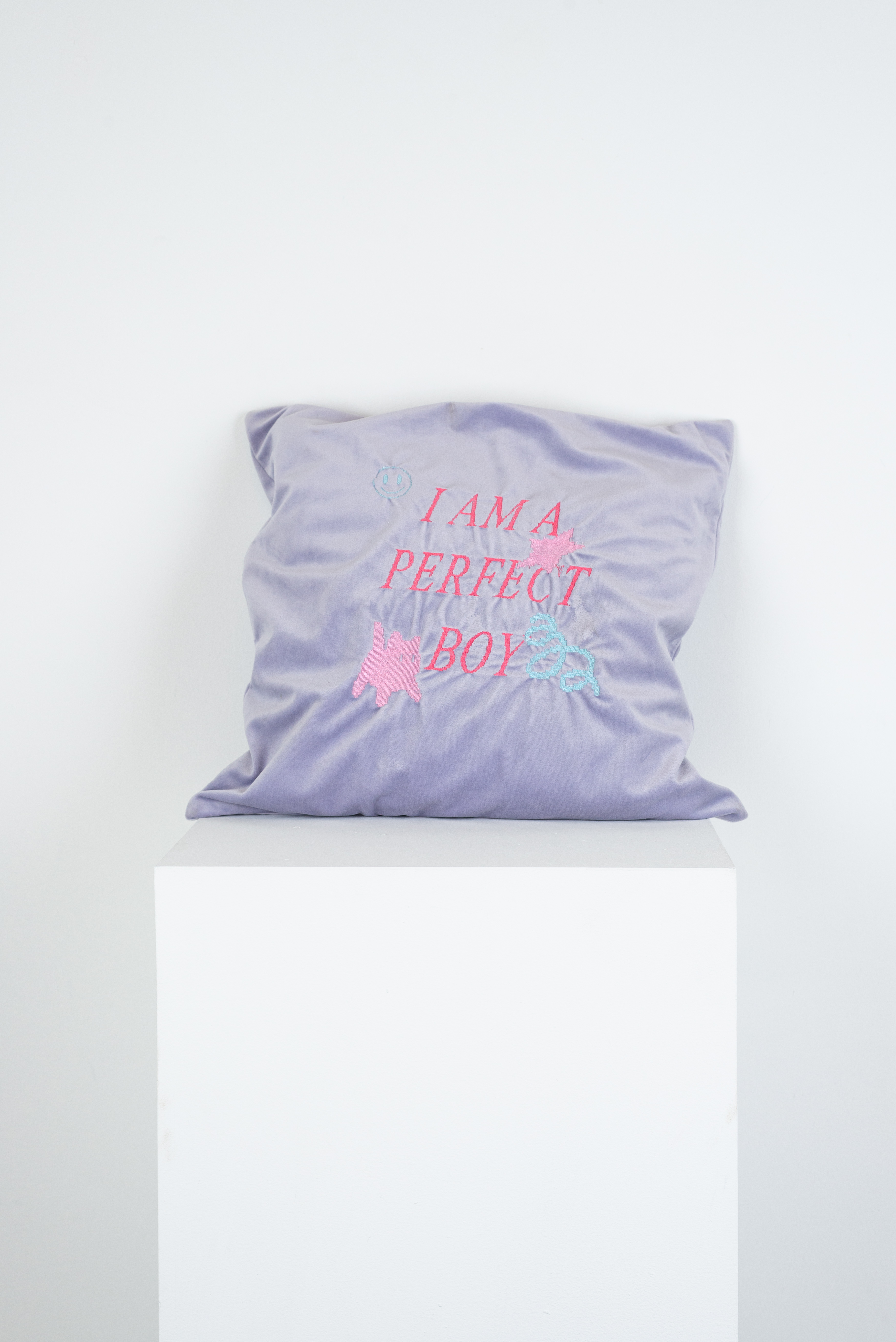 Théo Bignon. He must have left. I'm still down here waiting, 2024. Mix Media embroidery on cotton, stained basswood. Photo by Paul Litherland. theobignon.com